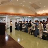 平成30年4月21日 石川建設㈱本社7階大ホールに於いて、経験年数「1年未満~2.3年」の現場員を対象に2018年緊急災害防止「若年層危険予知」研修会を行いました。総括安全衛生管理者の栗原専務の安全指示の後、ビデオによる危険の勉強、パトロール実施報告の後、当社の災害防止の具体的対策として「危険作業の見える化(垂れ幕設置と作業区画)」「危険業務の責任と役割の見える化(ヘル帯着用)」「危険人物の見える化(イエローベストの着用)」について説明をしました。その後現場危険予知訓練の実習・RAKY(リスクアセスメントKY)訓練の実習を行いました。チームに分かれ危険に対する対処対策を考え、各チーム毎に発表を行いました。その後全員で指差唱和を行い終了となりました。